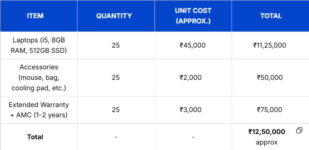 The outright purchase of laptops requires large initial capital. In the case of a 25 people team, one-time investment can readily exceed 10-15 lakhs, depending on setup. Additionally, the acquisition of laptops to an office involves not only the cost of purchasing the gadgets but also the expenditure on warranties, accessories, and installation.